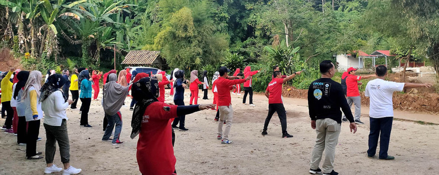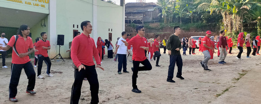 News Village - Halaman GOR Mini Desa Kampung Baru menjadi tempat senam bersama Lintas Sektoral Kecamatan Penengahan, Jum`at (15/07/2022). Senam bersama Jum`at pagi tersebut dihadiri oleh Camat Penengahan, Sekcam Penengahan, Kepala UPTD, Koordinator/Penyuluh, Kasi/Kasubag/Staf, Kepala Desa dan segenap Perangkat Desa Kampung Baru serta Ibu-ibu senam KJS.